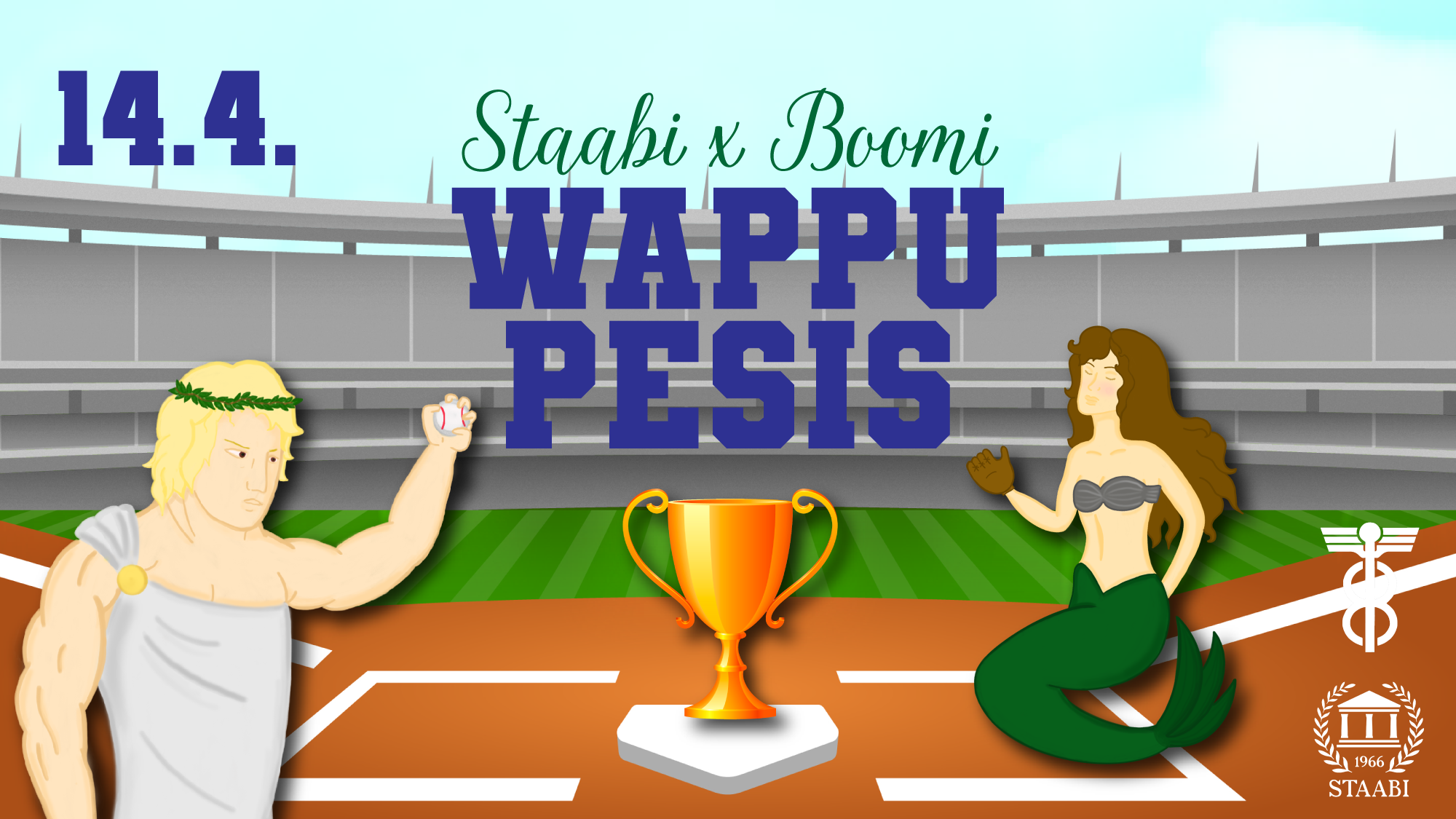 The most legendary sporting event of Vappu is here again as Boomi faces Staabi in a pesäpallo match on April 14th! Come and witness the grand spectacle of Vappu, as Tampere’s most prominent student organizations battle it out to see who will be crowned the god of pesäpallo!