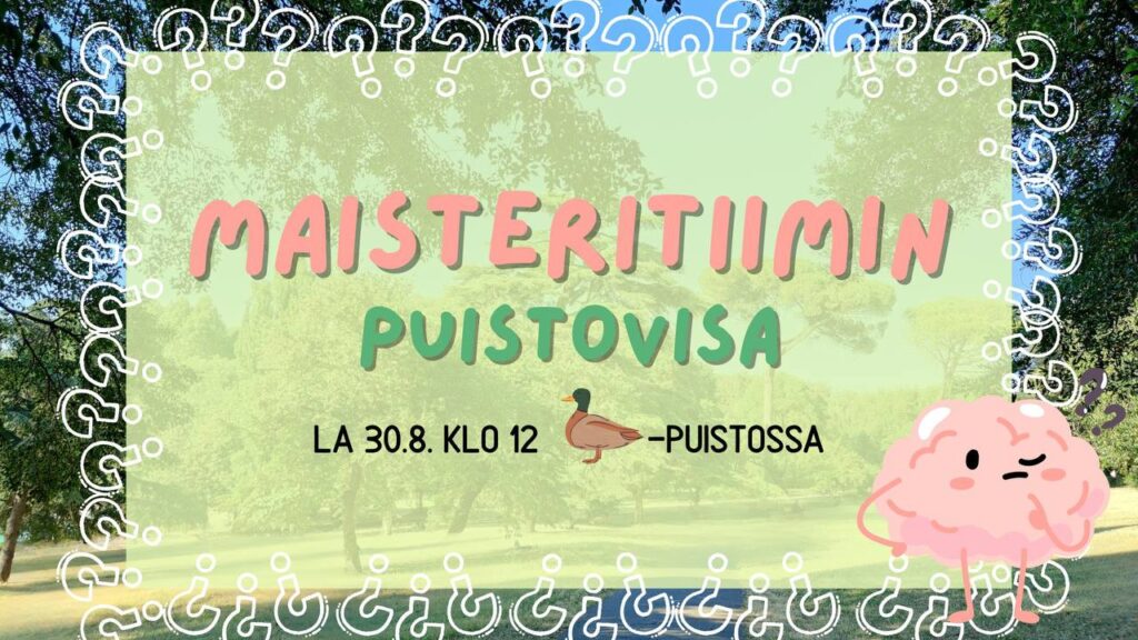 Vuosien saatossa olet saattanut kerätä tietoa, jonka käyttötarkoitusta olet pohtinut ummet ja ammet. Miksi minä tiedän urheilupolkupyöristä ja itämaisesta ’cuisinesta’ näin paljon? No tälle kaikelle tiedolle on nyt tarkoitus. Nimittäin maistereiden puisto(kalja) pubivisa Sorsapuistossa. Tule siis joko yksin tai valmiin tiimin kanssa, niin nähdään kuka niistä asioista oikeasti tietää. Mistä asioista? En minä tiedä. Mutta ota omat virvokkeet mukaan!