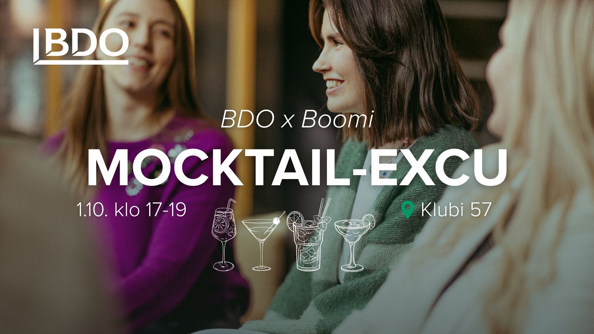 Haluatko oppia valmistamaan herkullisia mocktaileja ammattilaisten johdolla? Tule mukaan BDO:n ja Boomin mocktail-iltaan ja sukella mocktailien maailmaan ammattilaisten opastuksella. Mocktail-kurssin ohessa pääset verkostoitumaan BDO:laisten kanssa ja kuulemaan inspiroivia uratarinoita.