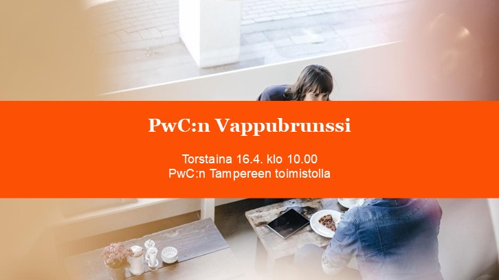 MITÄ: PwC Vappubrunssi! MISSÄ: PwC:n Tampereen toimistolla Yliopistonrinteen Technopoliksella osoitteessa Kalevantie 2, 33100 Tampere MILLOIN: 16.4. klo 10.00 MITEN MUKAAN: Ilmoittautuminen Kide.appissa 3.4.